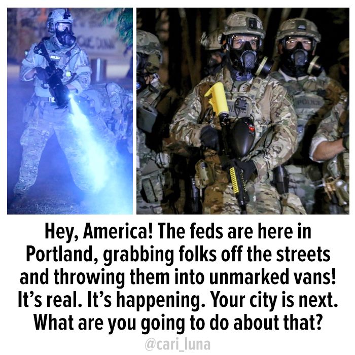 Been seeing this floating around on social media and the mainstream media and everyone is saying they are the Feds but not one real reporter has proved it one way or another. Now days, you can buy uniforms at many sites online and other stores. They could even be a contract private security that is working for the government, or private security firm, or a completely different group that is working for someone other than government, person or persons doing this.